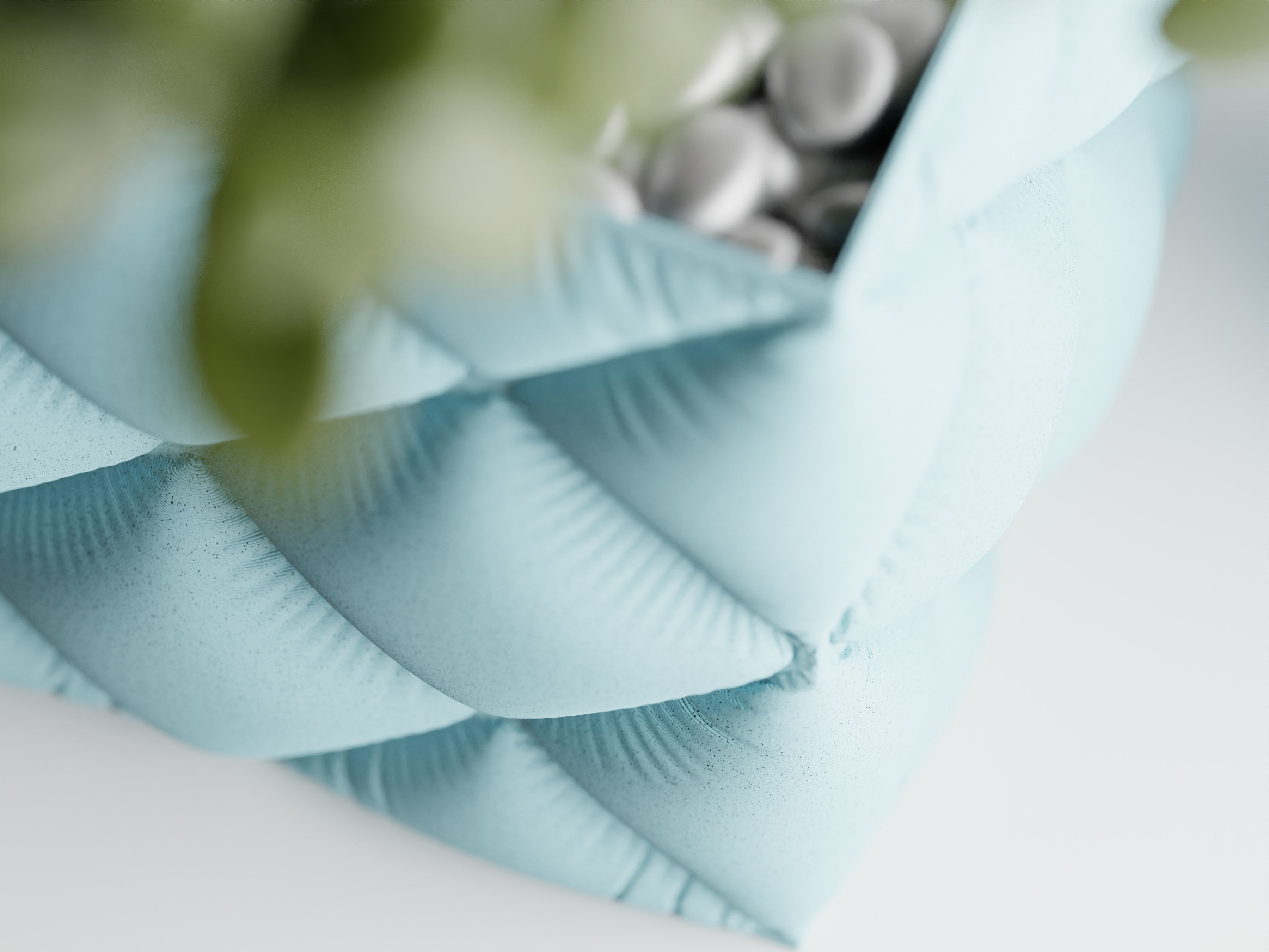 Außenkörper aus PLA auf Pflanzenbasis; on-demand gefertigt, Versand in recycelbarer Verpackung. Wasser nur in den Einsatz füllen.