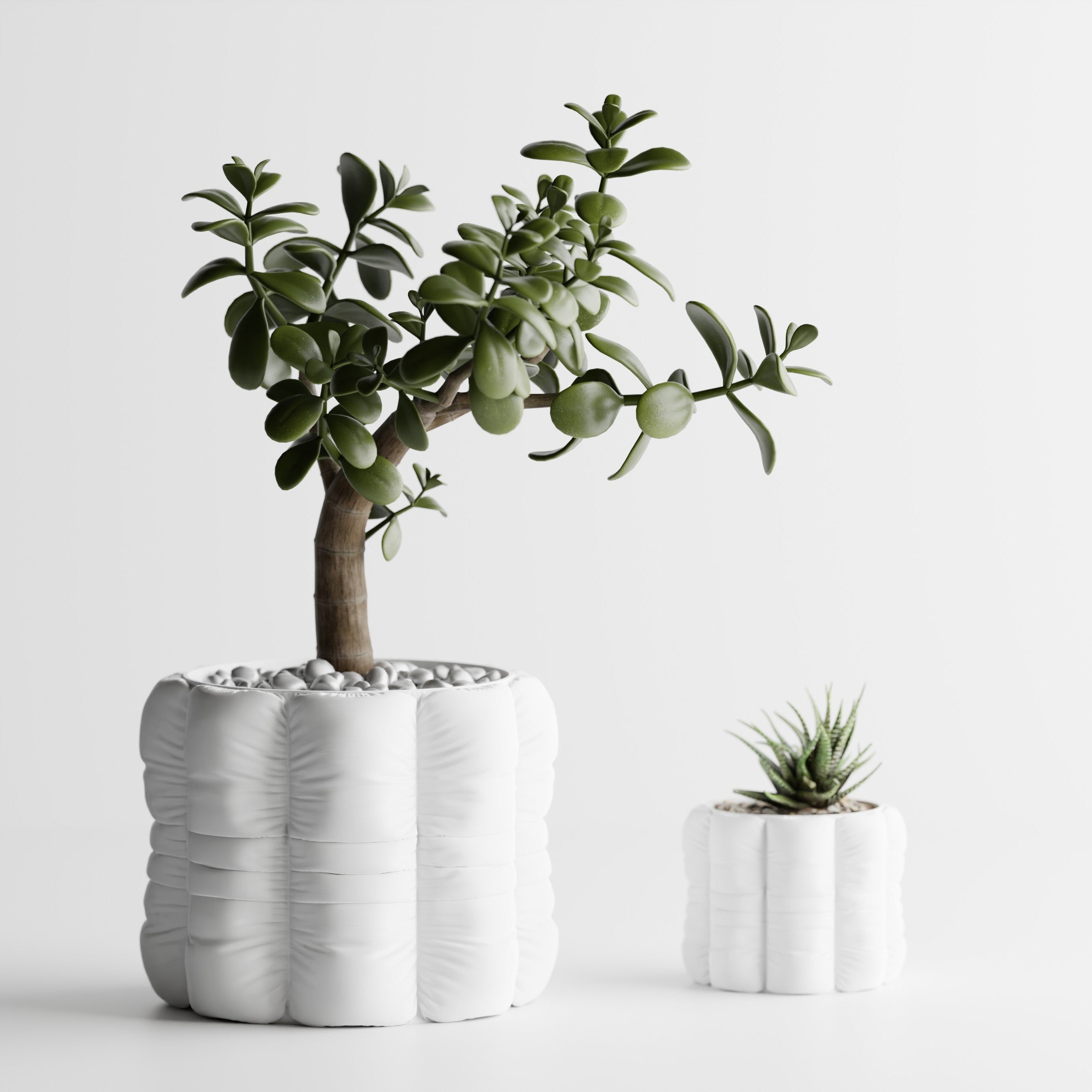 Niedriger Zylinder-Pflanztopf mit kissenartig gerundeten Vertikal-Segmenten und sanft abgerundeten Ecken. Die feinen Querfalten verleihen Tiefe und einen textilartigen Look; der obere Rand bleibt klar gefasst. Ideal für Sukkulenten, Bonsai und kompakte Zimmerpflanzen.